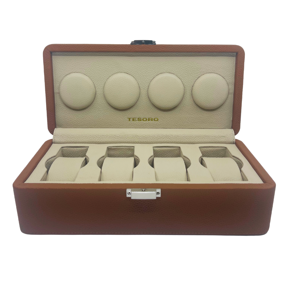 Elevate your watch collection with our premium leather watch case, designed to hold up to four timepieces. Made from genuine Italian leather, this elegant case serves as a stunning decor piece while keeping your watches safe and organized. Featuring two sets of adjustable cushions, it easily accommodates all wrist sizes, making it the perfect blend of functionality and style. Showcase your favorite watches with sophistication!